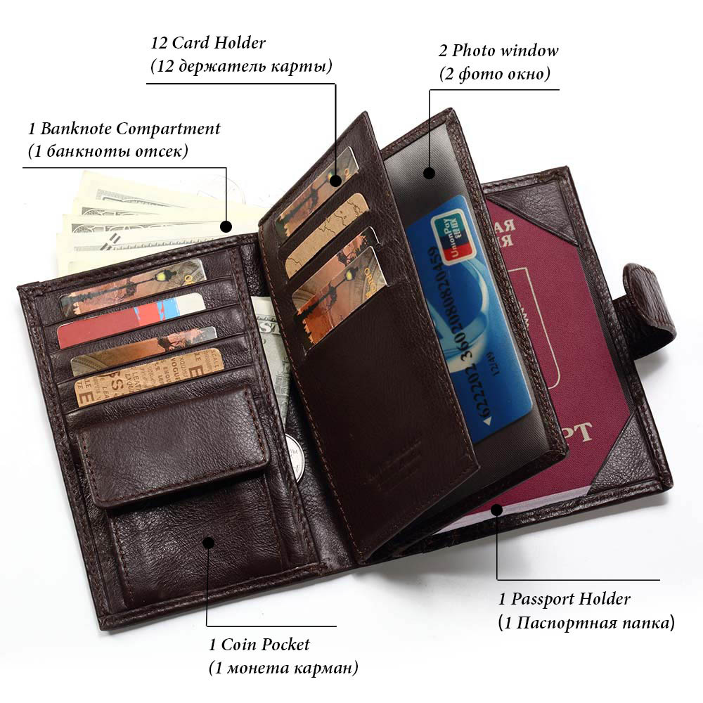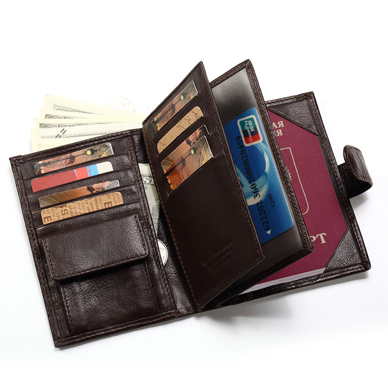 Genuine Leather Men’s Wallet First Layer Leather Business Casual Wallet Large Capacity Multifunctional Passport Book